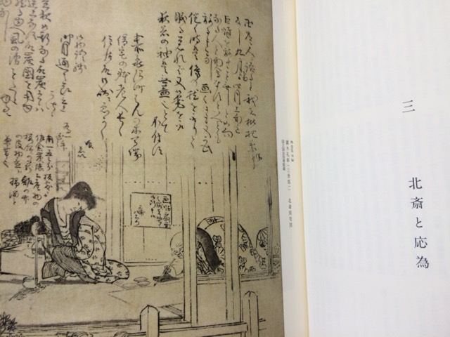 説明文:「稀代の浮世絵師葛飾北斎娘にして女浮世絵師葛飾応為。近年彼女が残した色彩感覚や濃淡陰影に特色がある浮世絵が注目を集めている。その作風は妖艶にして繊細、怜悧にして大胆で見るものを魅了してやまない。現在確認できる作品数は多くないが、本書では可能な限り作品を集める。その上で遺された史資料を駆使・検証し、応為の画業・生涯を探る。また、父北斎晩年には応為は父に寄り添い父子合作の可能性が指摘されている。本書は初紹介作品・特別掲載作品も含め、各作品の来歴を抑えると共に、父子の作風の類似点・相違点に注目し、新たな研究視点を提示する。」