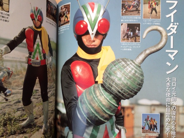 記憶が曖昧になっていますが、あらためてこういった本で見返してみると、それぞれのシリーズごとに特徴があり、デザインなどがちゃんとしているもの、お子様向けのちゃちなものなど、ばらつきがあるものですね。仮面ライダー新1号やV3などは、怪人のデザインも見事で、今見てもまったく古びていません。