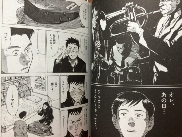 まっすぐで単純な主人公・大は、アホなほどひたむきに描かれ、周りの友人たち、大を支える家族たち、ジャズを愛する仙台の大人たちの描写が素晴らしいですね。絵もすごくて、音を伝える表現や寂しい河原の表現、ちょっとした描写からもしっかりと音が感じられるようです。