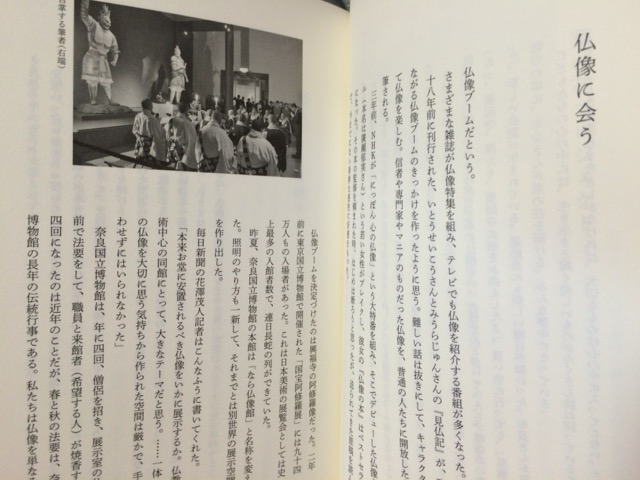 2010年10月の連載開始から2015年9月の掲載分まで、ほぼ時系列順に並んでいて、奈良国立博物館・学芸部長の時代のお話が主となります。私自身、年間パスポートを購入して熱心に奈良博へ通っていますので、その時々の特別展のお話など日記を読み返しているかのような感覚になりました。正倉院展はもちろんのこと、貞慶・古事記・當麻寺など、これまで拝見してきた企画展の内容ごと、懐かしく思い出されます。