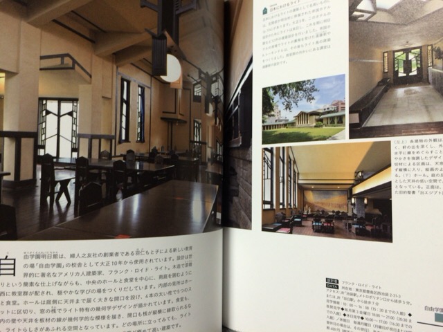 どのページをめくってみても、くらくらしてしまいそうな建築ばかりですが、個人的に大好きなフランク・ロイド・ライトの作品「自由学園明日館」などたまりません!幾何学的なラインを多用していて、隅から隅までデザイン的です。いつかその中に身をおいてみたいですね。