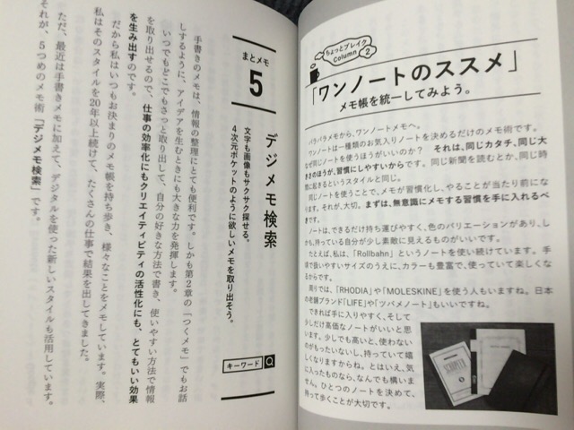 これまであまり意識してきませんでしたが、メモの書き方次第でアイディアの源泉になったり、単なるゴミで終わってしまったり、大きな差がつくものです。「あとで見なおした時に活用できるようにメモをする(しかもアイディアを検索しやすいように)」という考え方はすぐにでも取り入れておきたいですね。