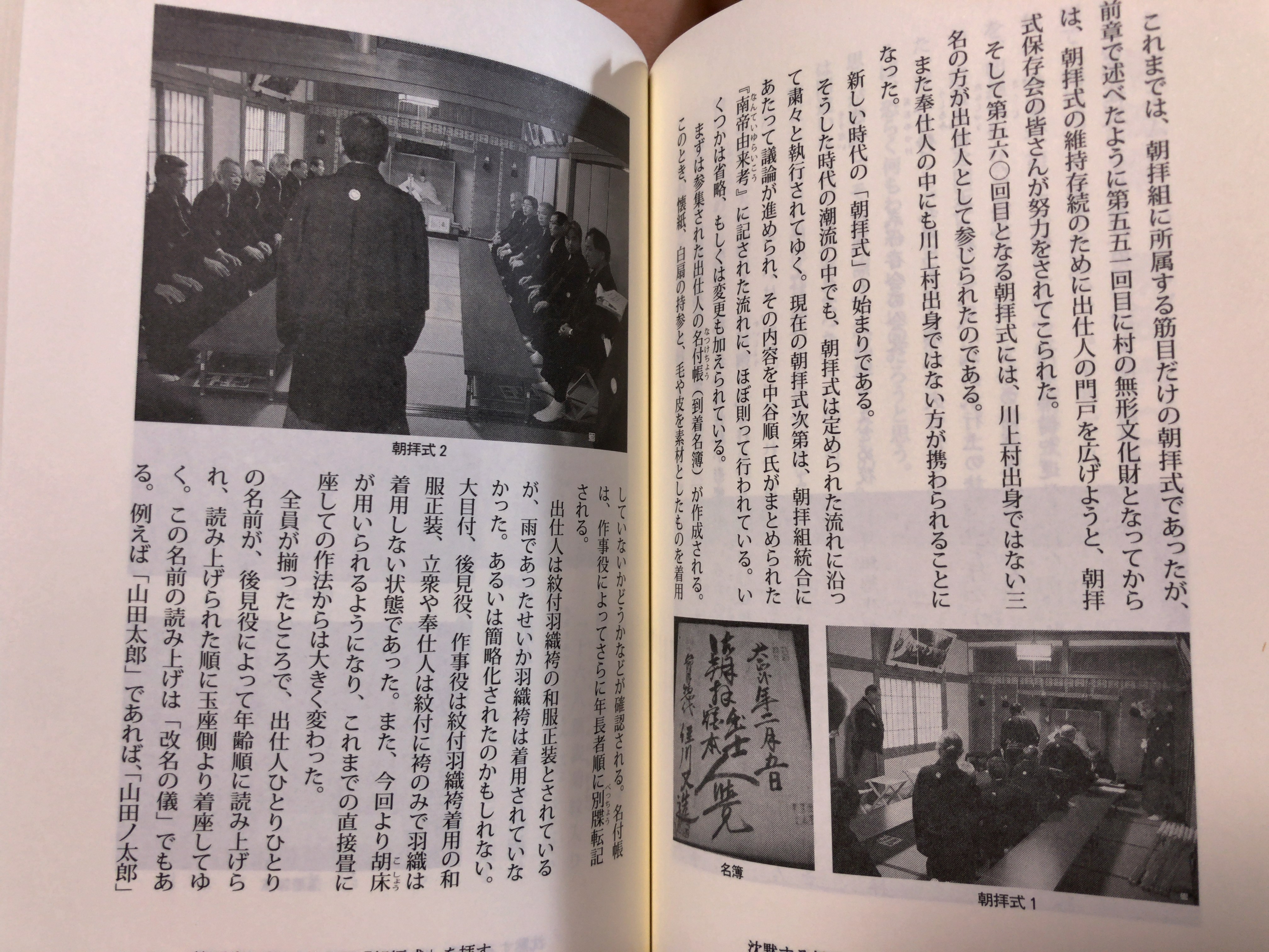第四章・第五章は、今も川上村で行われている「朝拝式」について、それに関わる人々の思いと、その式の様子のレポートです。