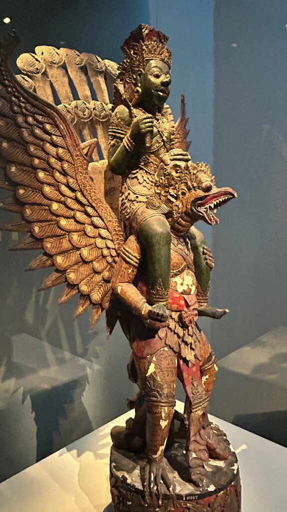 ▲こちらは現代に造られた「霊鳥ガルーダに乗るヴィシュヌ神像」(インドネシア、20世紀)。神々しさとともに、禍々しさや可愛らしさがあふれ出てます。