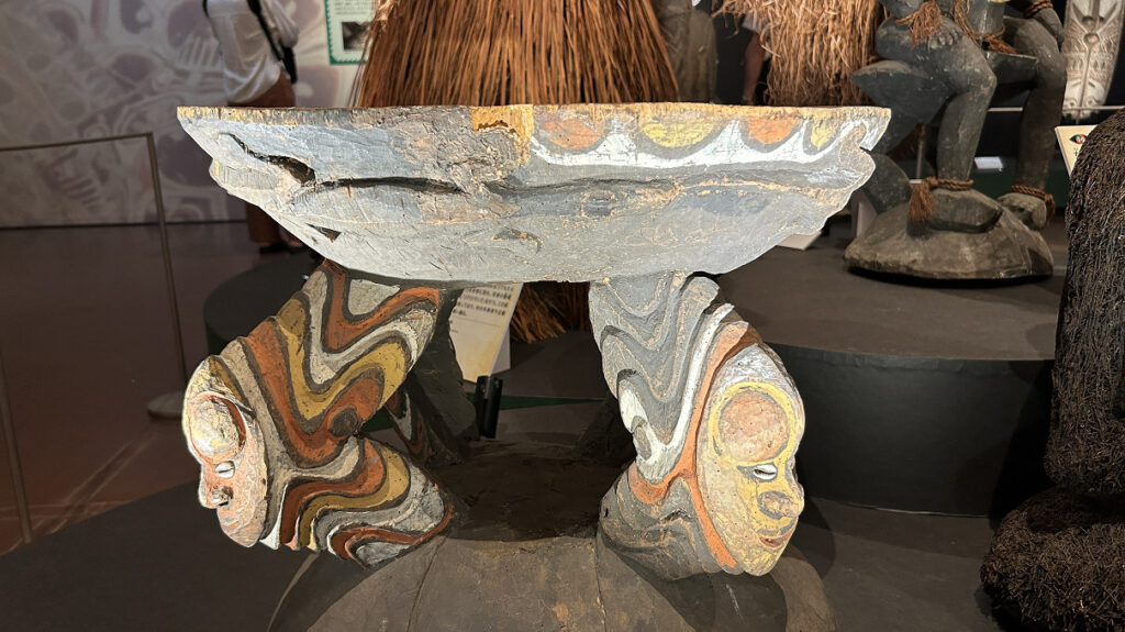 ▲今回の特別展で個人的に一番びっくりしたのが、パプアニューギニアの「首長用腰掛け」でした。