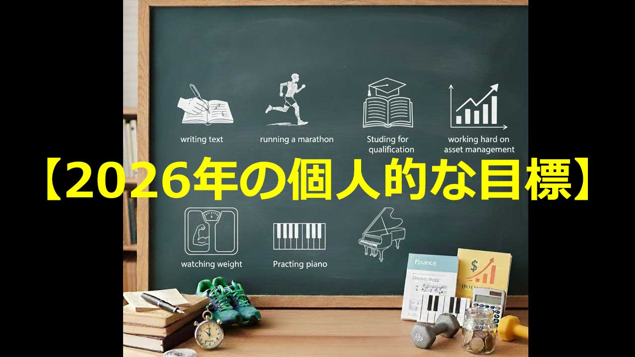 【2026年の目標】として「まとまったテキストを書く」「100kmマラソンで10時間30分」「体重は60.0kgくらい」「FP検定2級に合格」「ピアノ練習を続ける」「資産運用は7%目標」などなど、いくつか設定しました。やればできる(きっと)!