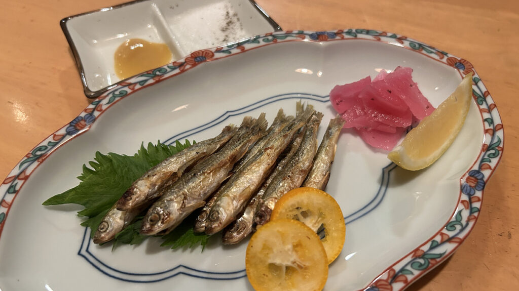 ▲「赤こんにゃく煮」など他にもいろんな近江名物をいただきましたが、とくに美味しかったのが「本もろこ焼き」でした。もろこは佃煮のイメージが強いですが、このサイズを焼いて食べるのはなかなか珍しいかも。こういうのが旅の醍醐味ですね!