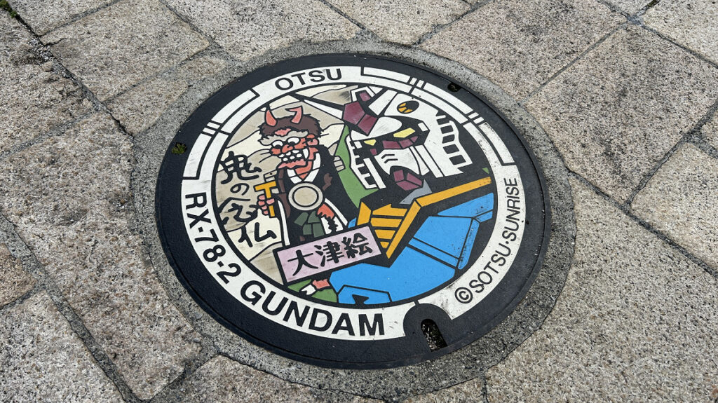 ▲大津市2日目は朝から琵琶湖畔へ。私はガンダム界隈には疎いのですが、ガンダム×大津絵のこんなマンホール蓋を見つけて喜んだりしました(ガンダムマンホールプロジェクト)。新旧のギャップがすごい!